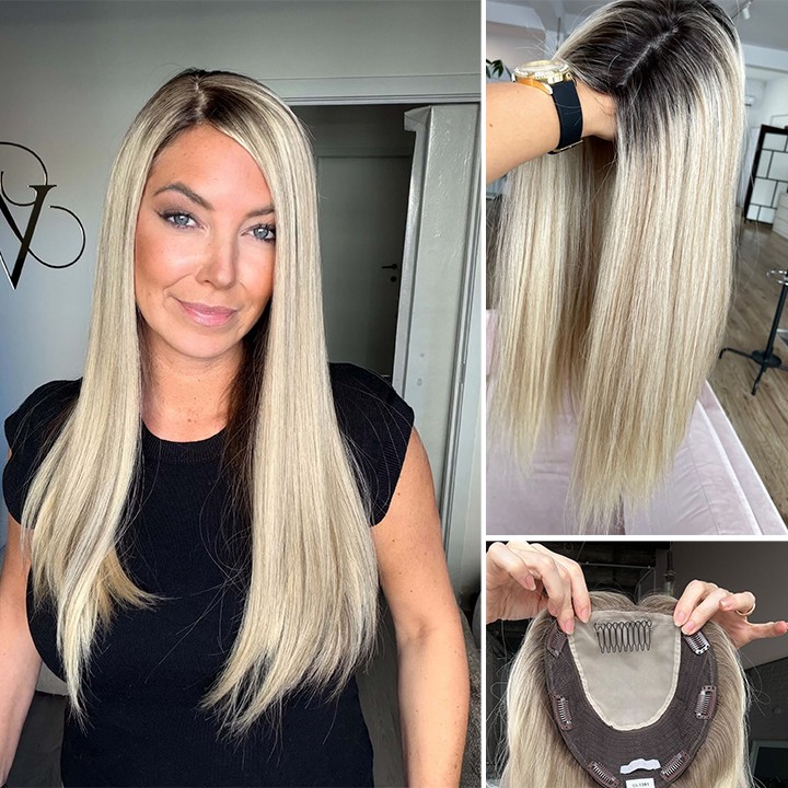 Silk Top Base Ash Blonde Color Natural Scalp Top Clip-in Hairpieces For Women | Increase Hair Volume